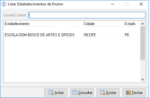 Caminho:Cadastros Básico⇒ Cadastros\ Estabelecimento de Ensino