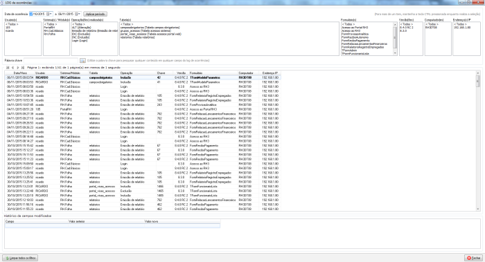 ### Tela que possibilita efetuar consulta aos Logs do Sistema. No momento em que o usuário vai preenchendo os filtros (ex: Usuários, módulos, operações,…), o sistema já vai aplicando os mesmos. ###