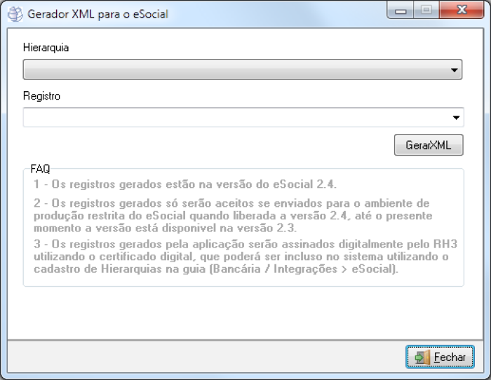 ### Funcionalidade responsável pela geração do arquivo XML do eSocial. ###