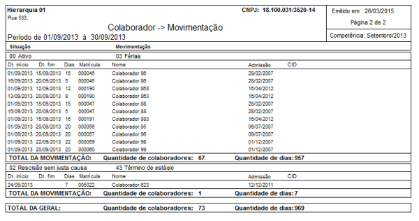 Relação das pessoas que tiveram algum afastamento e/ou movimentação no período selecionado.