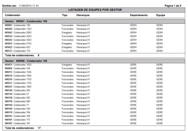 Relação das equipes por gestor