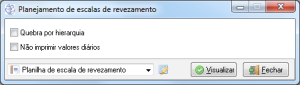 | Facultativo | Por intermédio deste botão será possível acessar o seguintes relatórios: Planejamento de escalas Planejamento de escalas e revesamento |