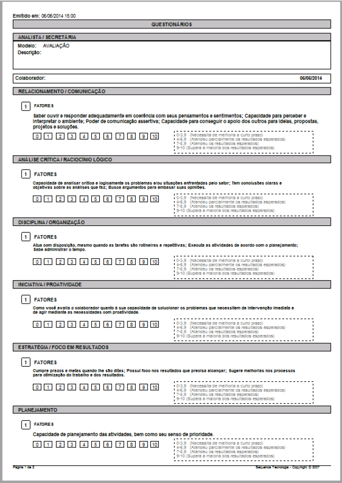 ### Visualização de perguntas e opções de respostas que serão utilizadas na rotina Avaliações de desempenho do módulo de Gestão de Pessoas. ###