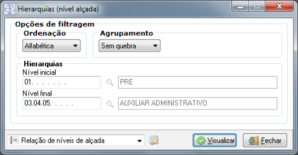 ### Exibe a listagem das Hierarquias funcionais, que é a mesma coisa que Nível de alçada. ###