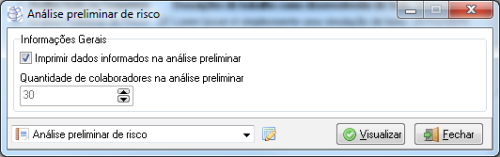 Funcionalidade destinada a efetuar a Análise preliminar de risco.