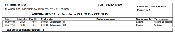Relação da agenda médica