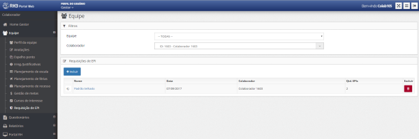 ### Através desta funcionalidade, os gestores podem cadastrar as requisições de EPI a serem utilizadas no momento da Entrega de EPI. ###
