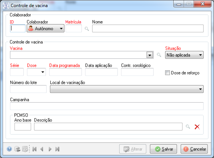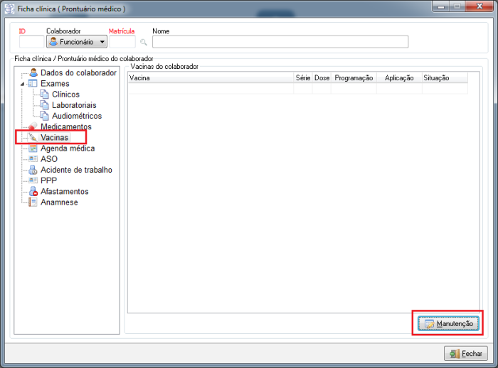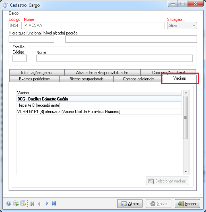 11911 - Controle de vacina - PCMSO/ Cargo/ Ficha clínica/ Notificação
