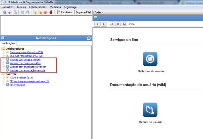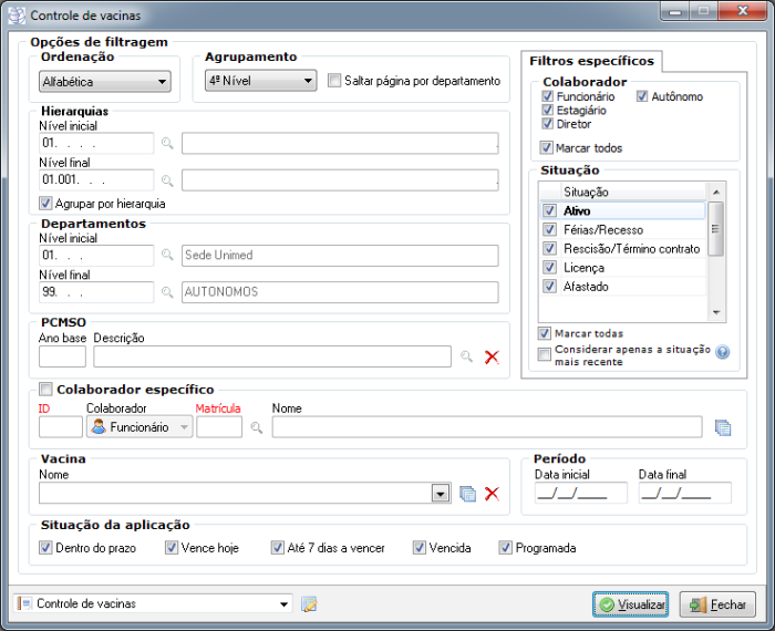 Caminho | Segurança & Medicina do Trabalho→ Relatório→ Medicina→ Controle de vacinas |