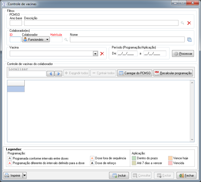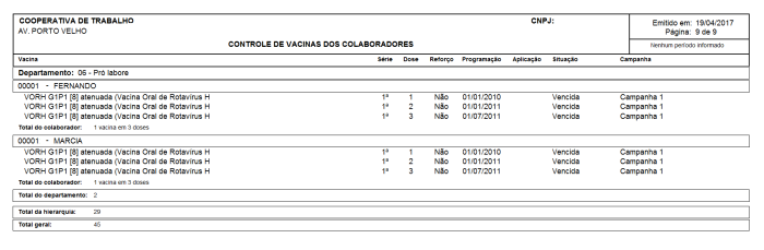 Descrição | Relatório para acompanhamento do programa de vacinação dos colaboradores. ![]() ![]() |