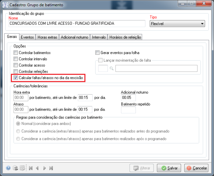 14321 - Configuração para o cálculo de atrasos e horas extras