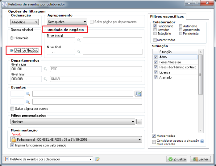 14335 e 13270 - Adicionado o filtro de unidade de negócio em alguns relatórios