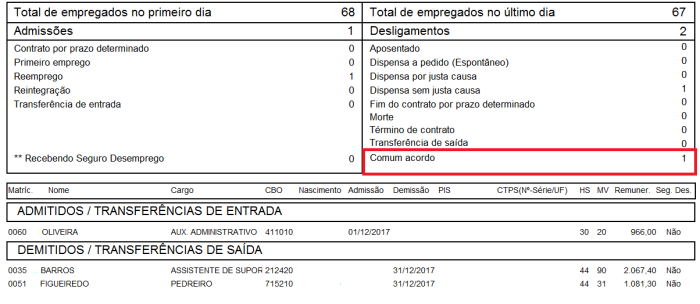 Descrição | Por conta da reforma trabalhista ( DEV-1891), 3 novos campos foram inseridos no layout mas que são “transparentes” aos olhos dos usuários. Os campos foram: • Trabalho parcial; • Teletrabalho; • Trabalho intermitente. Na impressão do relatório foi incluída a informação “Desligamento de comum acordo”. ![]() |