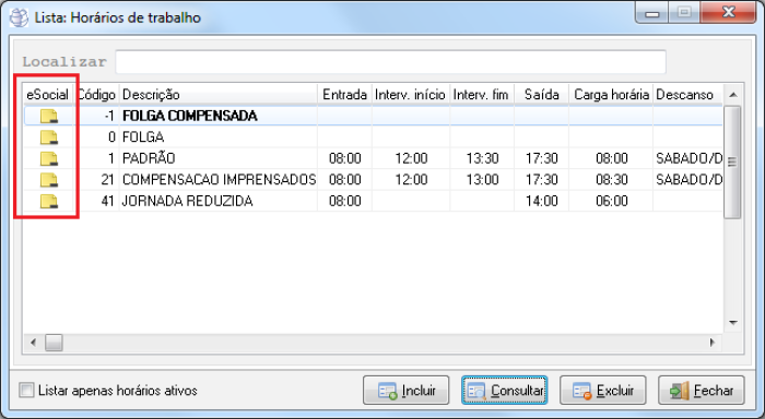DEV-1579 - eSocial: Alterações no cadastro de horário de trabalho (S-1050)