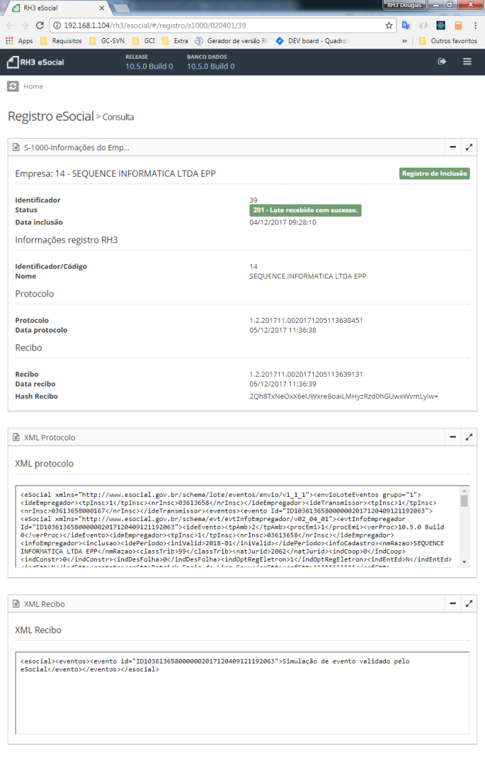 DEV-1652 - eSocial: Criada funcionalidade para controle de informações na tabela de versões, matriz de rastreabilidade e controlador dos protocolos de envio e recibos de entrega