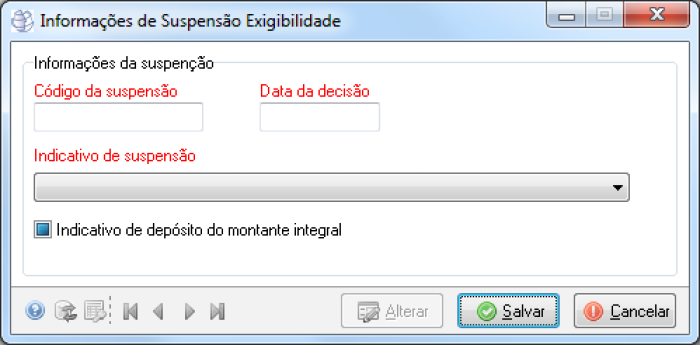 Caminho | Cadastros básicos→ Tabelas→ Processos administrativos / judiciais |