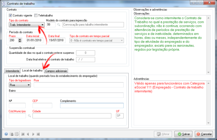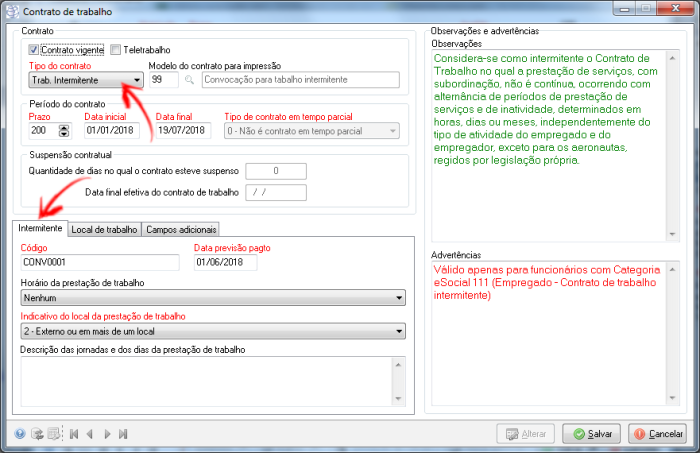 DEV-1993 - eSocial: Adicionado contrato de trabalho intermitente e gerando o evento S-2260