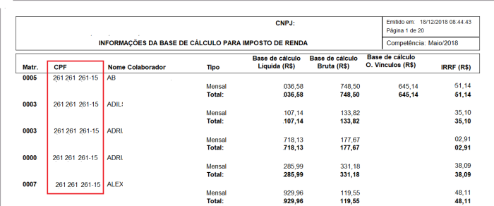 DEV-2848: Exibindo o CPF do colaborador no relatório "Base de cálculo (Imposto de Renda)"