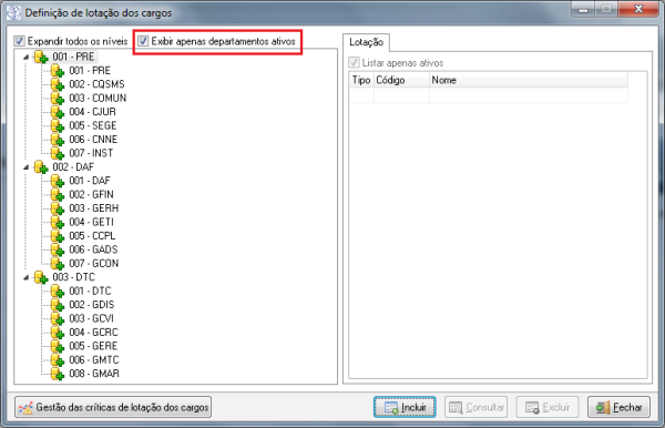 Descrição | Foi criada uma opção para o usuário poder filtrar os departamentos inativos. Por padrão, esta opção virá marcada. ![]() |
