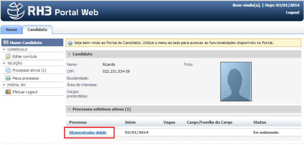 10890 - Possibilitada a inscrição no processo seletivo na home do candidato