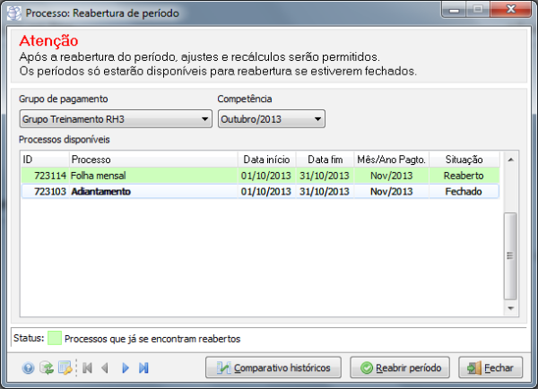 5184 e 10729 - Possibilitada a reabertura de períodos fechados (status reaberto)