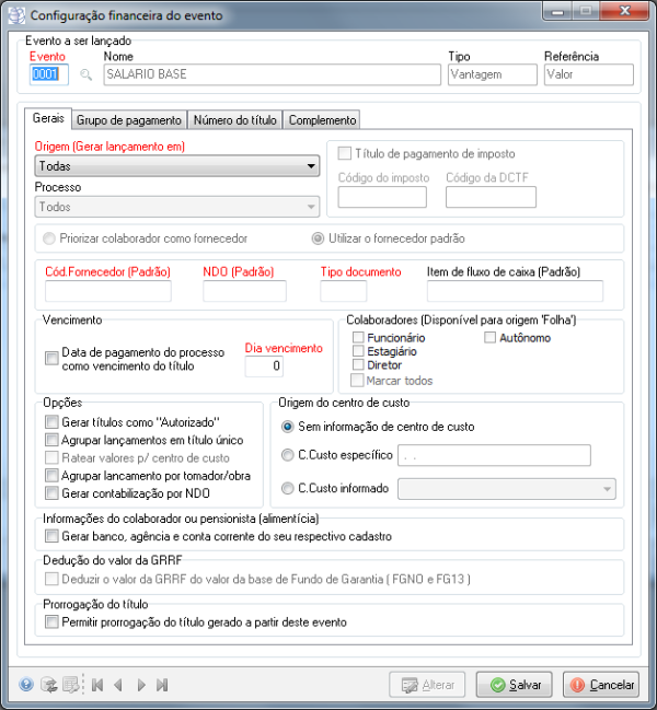 Caminho | Folha de Pagamento→ Tabelas→ Grupos de pagamento |