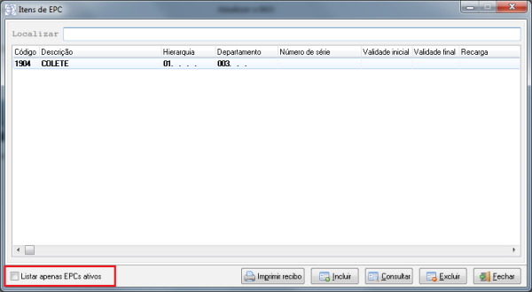 Descrição | Incluída a opção de filtrar na lista de EPC por ativos e/ou inativos. ![]() |