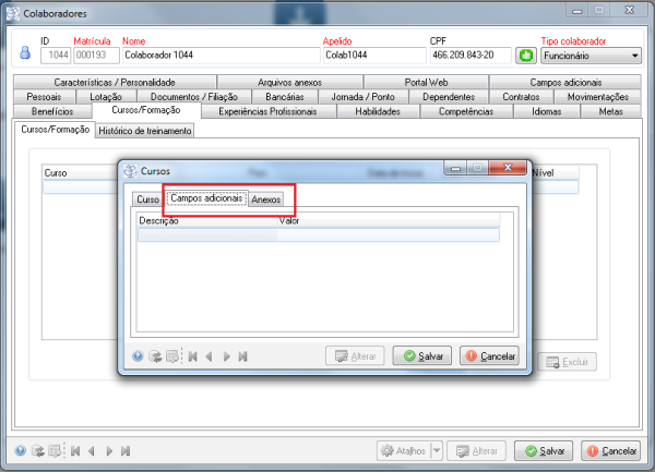 11996 - Adicionado o recurso de "campos adicionais" e "anexos" no cadastro de cursos/formação do colaborador