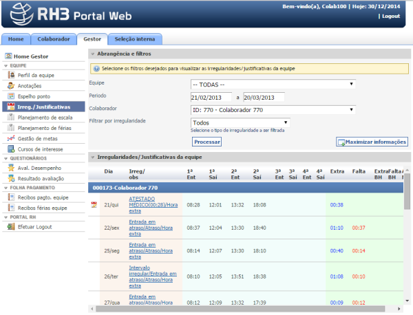 11577 - Visualização de colaboradores por departamento/equipe para lançamento de justificativas do ponto
