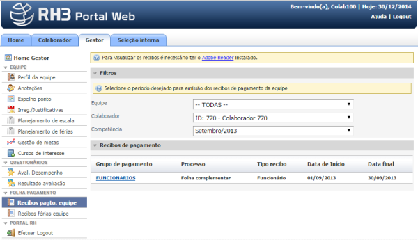 Caminho | Folha de Pagamento→ Colaboradores (Todos) |
