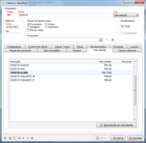 11653 - Permitindo cadastrar o valor unitário do Vale Refeição com 4 casas decimais