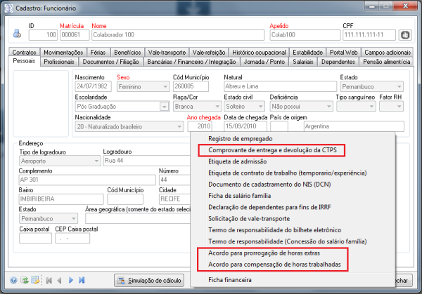 11777 - Inclusão de atalhos para relatórios no cadastro do colaborador
