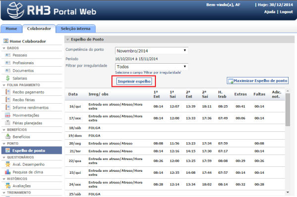 11987 - Disponibilizada impressão do espelho de ponto pelo colaborador