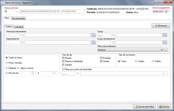 Caminho | Ponto eletrônico→ Banco de horas→ Pagamento do banco de horas |