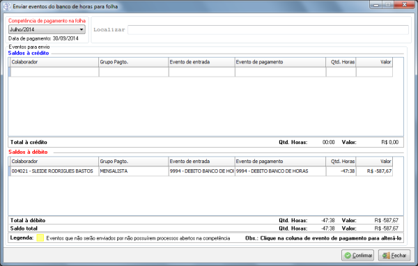 12116 - Relacionando evento do banco de horas com evento de pagamento na folha