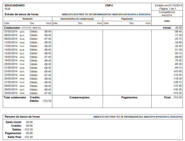 Caminho | Cadastros básicos→ Cadastros→ Sindicatos; Ponto eletrônico→ Tabelas > Banco de horas |