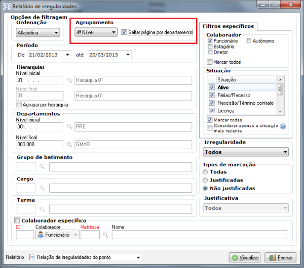 Descrição | Adicionada a opção Saltar página por departamento no relatório de irregularidades. Exemplo: ![]() ![]() |