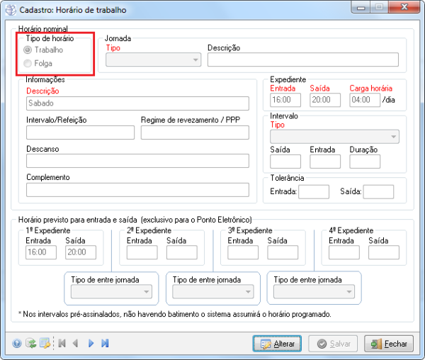 10494 - Possibilidade de incluir horário de Folga com uma descrição diferente