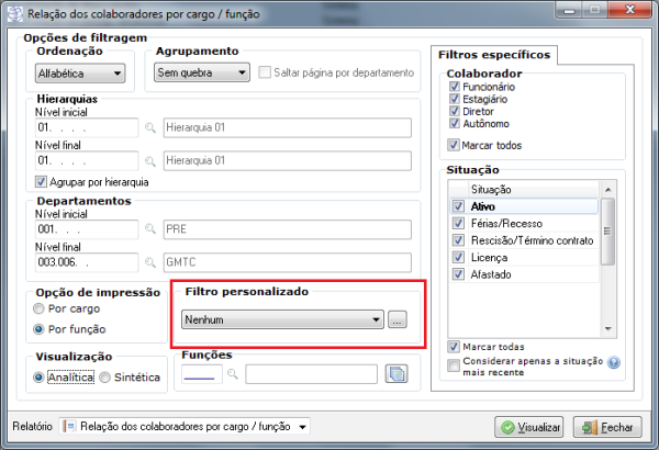 10769 - Disponibilizada a opção de filtro personalizado na relação de colaboradores por Cargo/Função