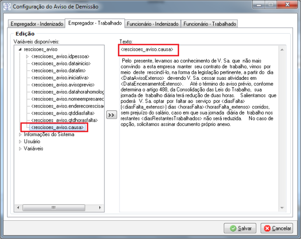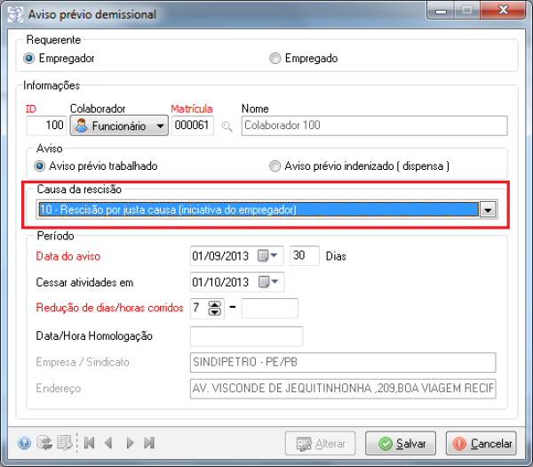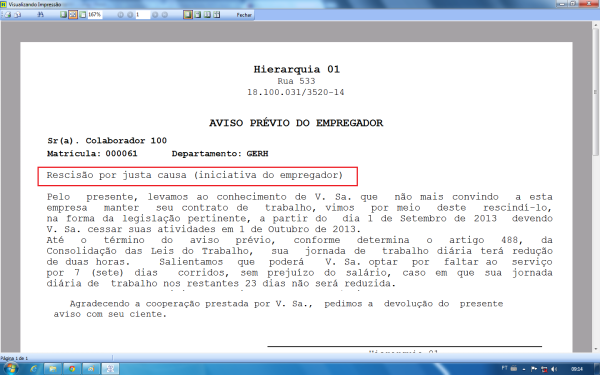 9663 - Opção para incluir causa da rescisão na carta de aviso prévio demissional