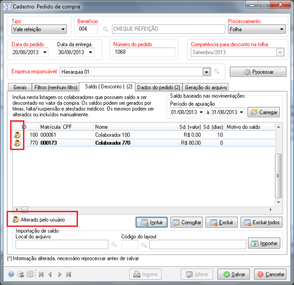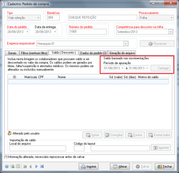 11433 - Pedido de compra de vales, levando em consideração faltas nos períodos anteriores