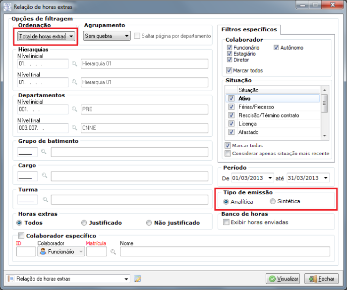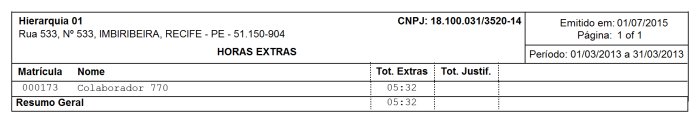 Caminho | Ponto Eletrônico→ Relatórios→ Relação de Horas Extras |