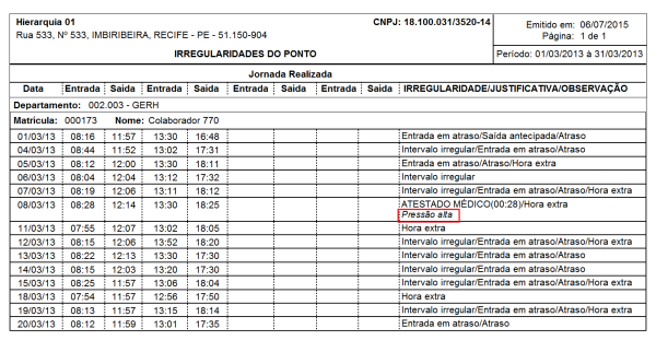12705 - Adicionado o campo de observação na Relação de Irregularidades no Ponto