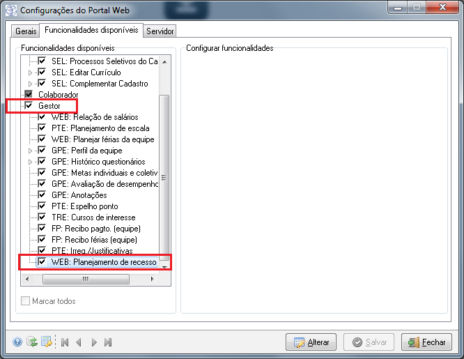 Caminho | Gestão de Pessoas→ Portal WEB→ Configurações; Portal WEB→ Perfil do gestor→ Equipe→ Planejamento de recesso; Portal WEB→ Perfil do colaborador→ Folha pagamento→ Recessos planejados. |