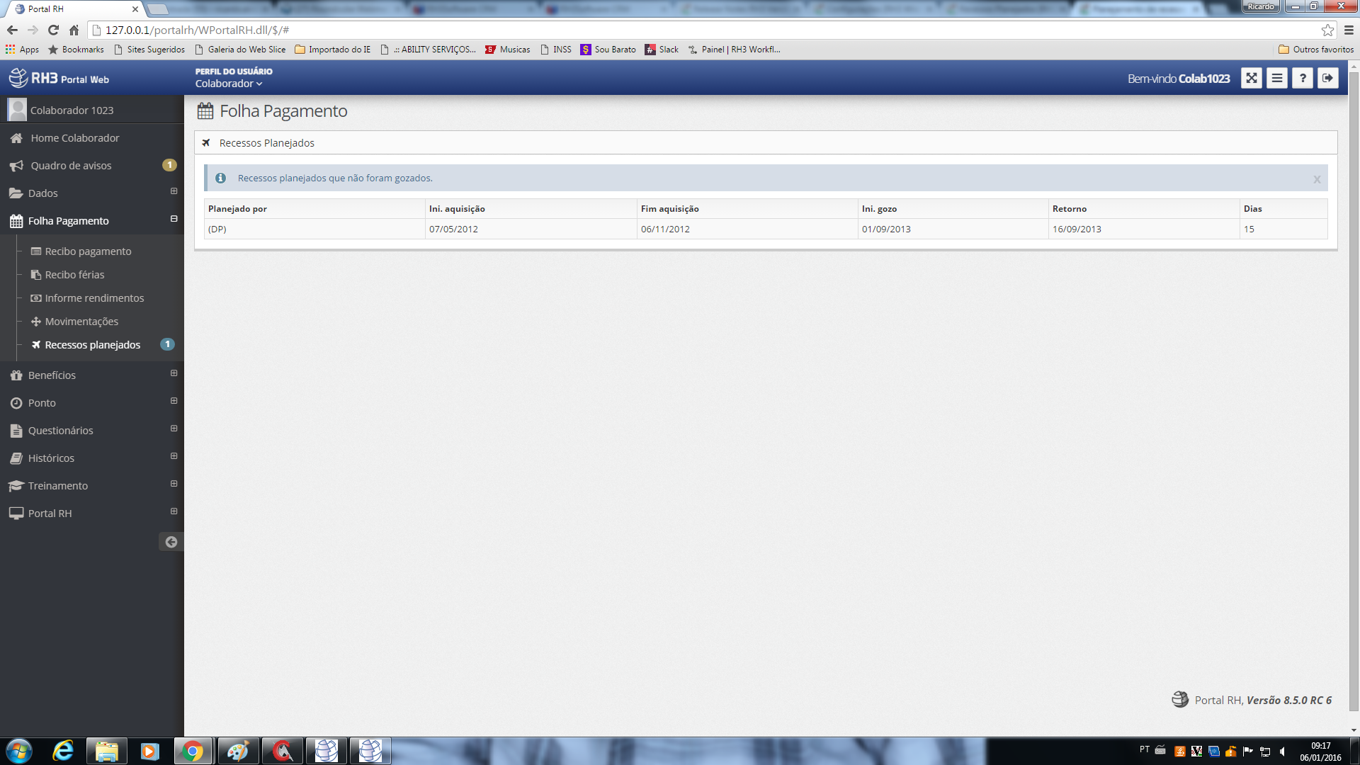 Descrição | O sistema foi alterado para que o processamento da folha não marque o processo de folha mensal como processo futuro quando o 13º não estiver calculado, permitindo assim que sejam calculados os 2 independentemente de ordem. |