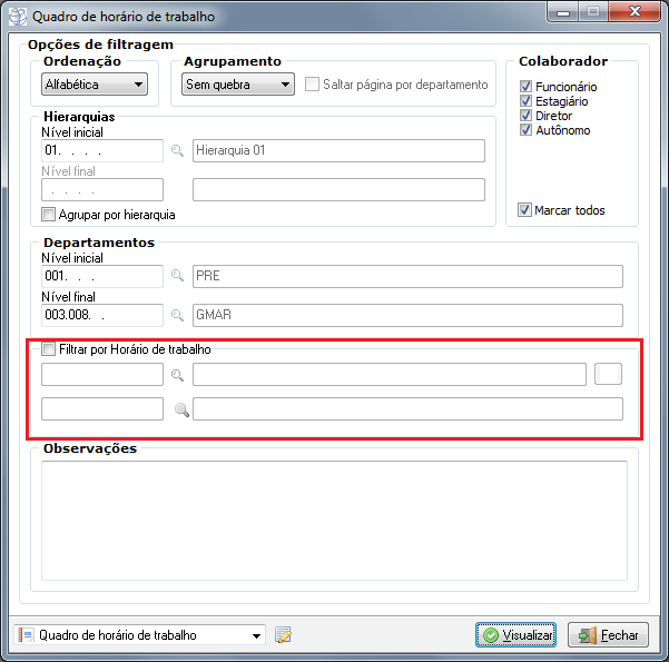 12877 - Incluído o filtro "Horário de trabalho" no relatório "Quadro de horário de trabalho"