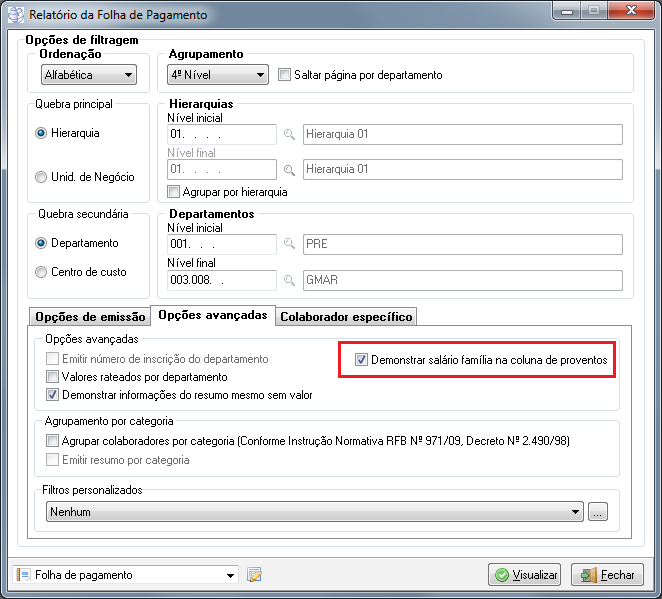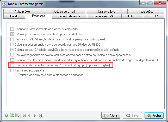Caminho | Folha de pagamento→ Geral |