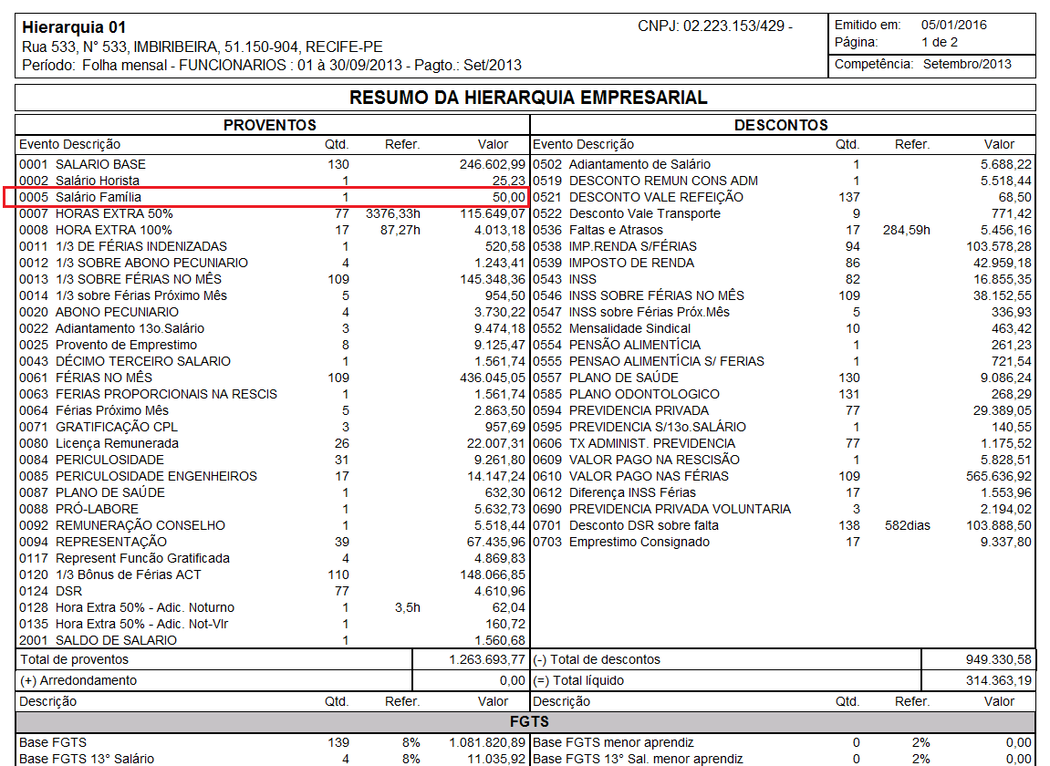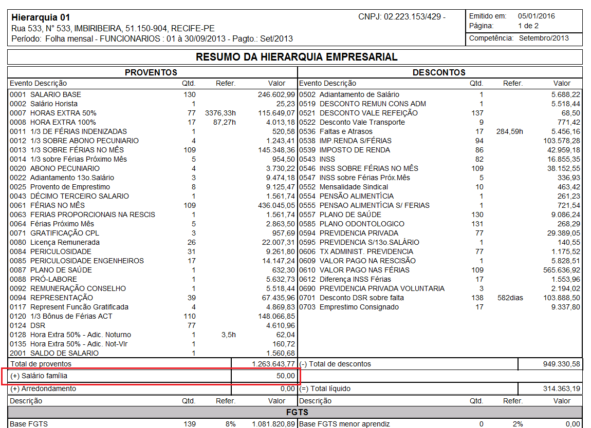 13083 - Exibindo o salário família como proventos no resumo da folha
