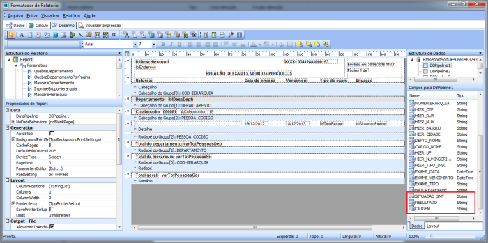 13535 - Adicionados novos campos na Relação de exames médicos periódicos