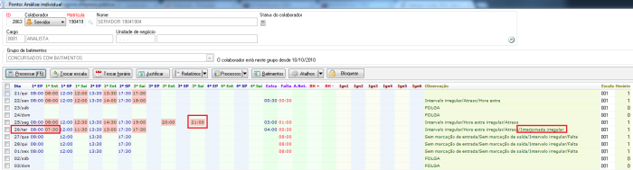 7365 - Informando irregularidade de funcionários que tiveram interjornadas no período